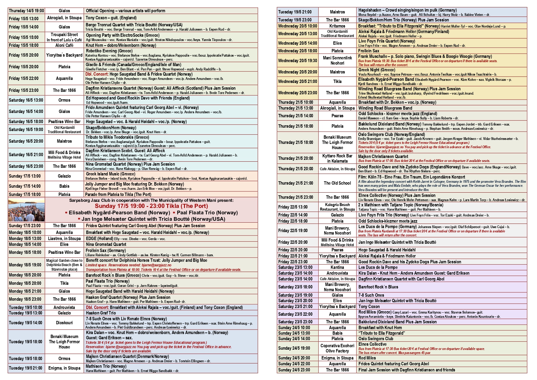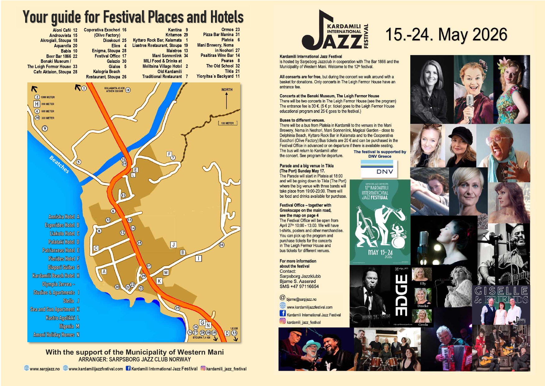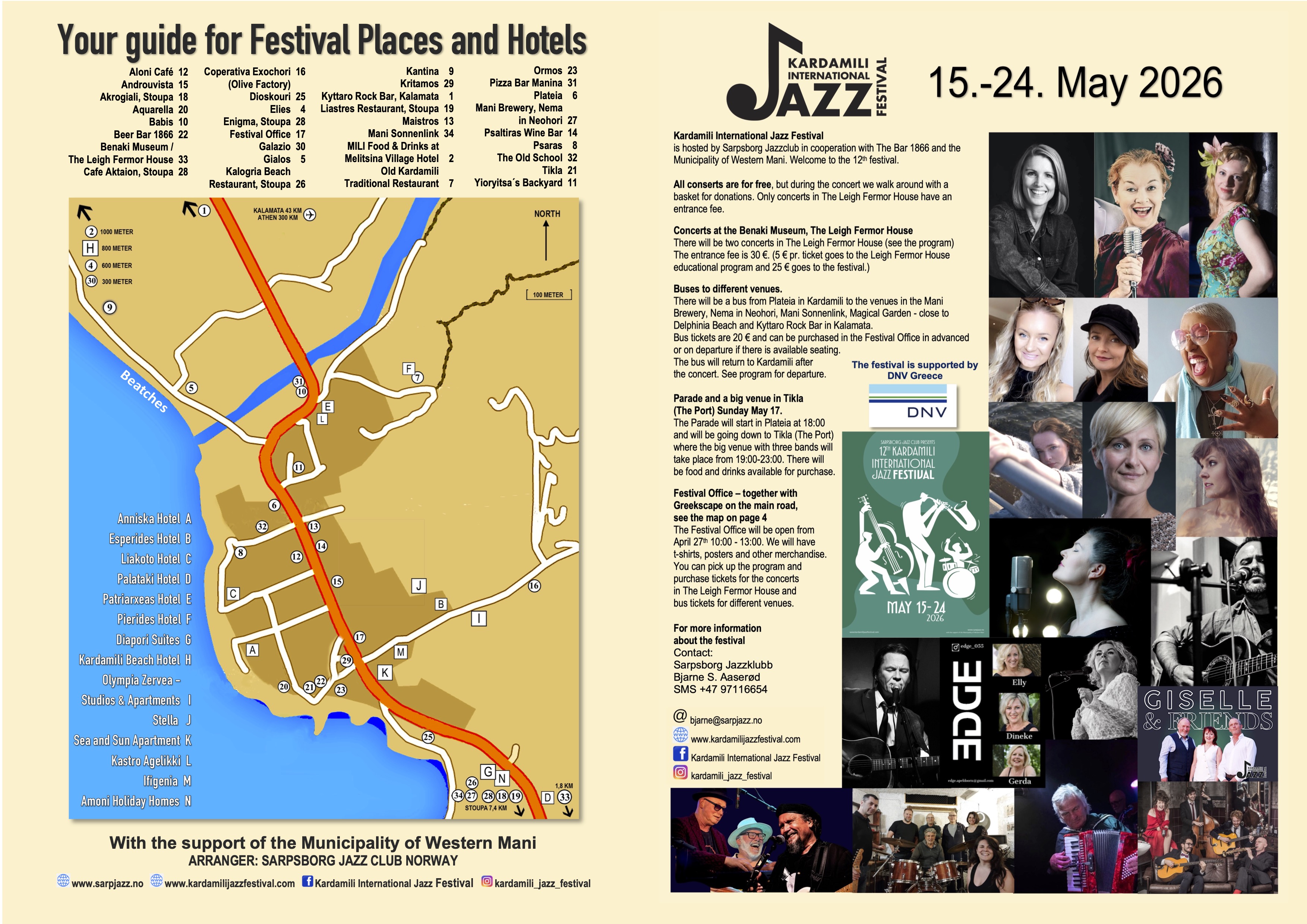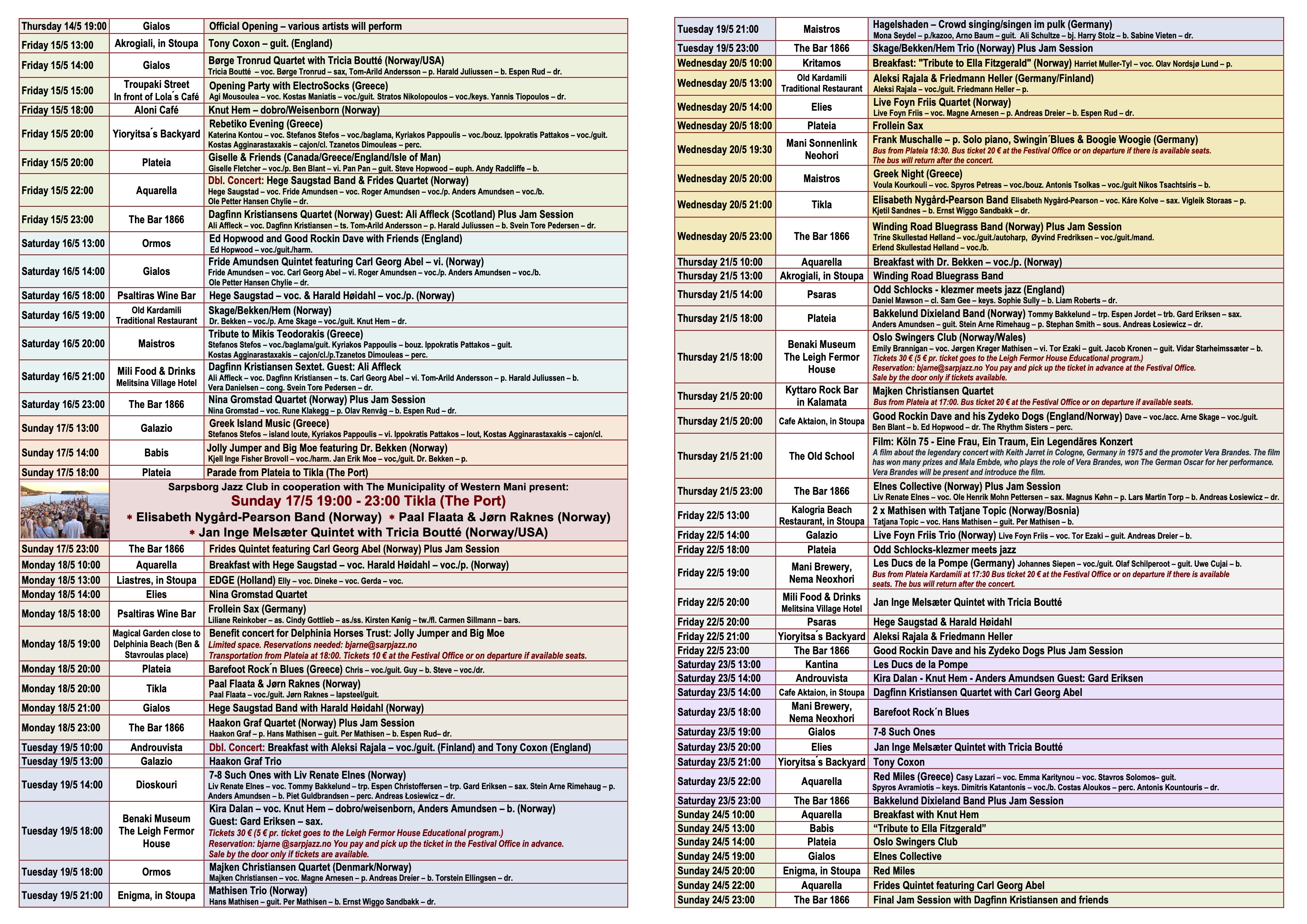 The festival is hosted by the Sarpsborg Jazz Club in Norway and the Bar 1866 in Kardamili, Greece with the support of the Municipality of Western Mani. Kardamili is a small, charming village with approximately 400 inhabitants, located in the Mani region of the Peloponnese, Greece. Almost all the concerts are for free, but we do send the basket around for donations. Kardamili has many attractions like beaches, gorges and plenty of restaurants and tavernas with wonderful food. Kardamili and its surrounding area is a perfect spot for hiking and outdoor activities.